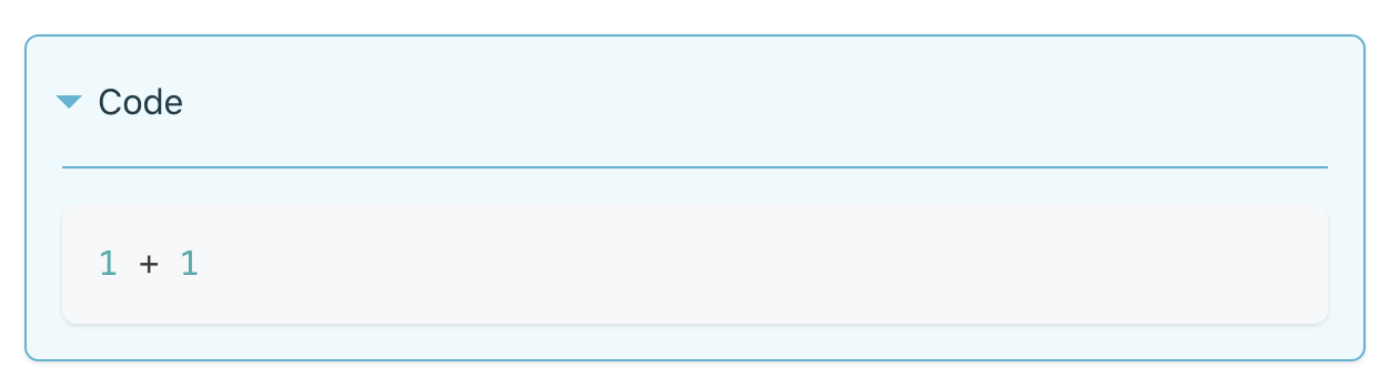 Code blocks in Docusaurus are very similar to Quarto. One important thing to keep in mind is that the syntax highlighting theme comes from Docusaurus rather than Quarto. See the theming documentation for additional details.